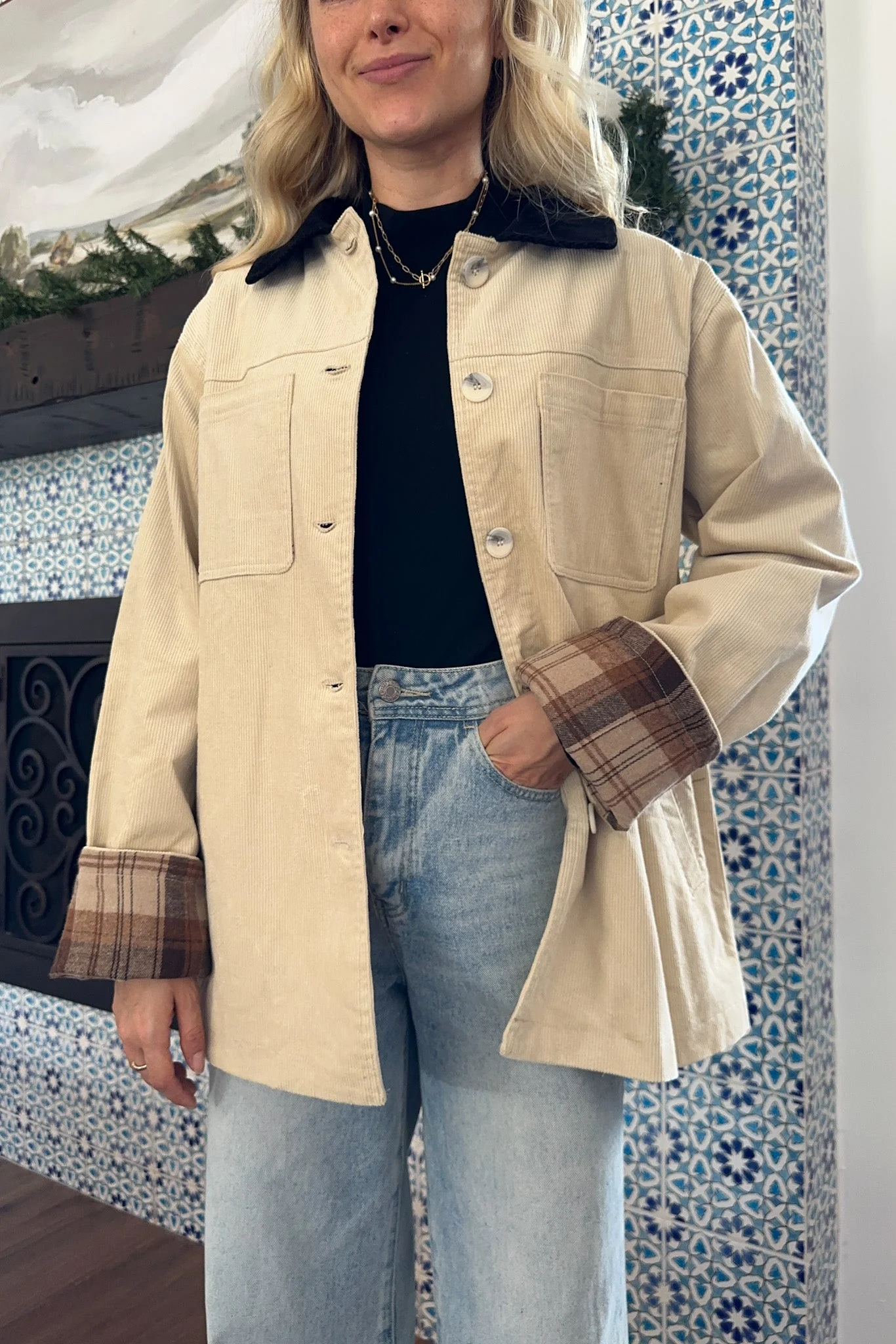 Highland Corduroy Collared Cotton Barn Jacket in Tan
