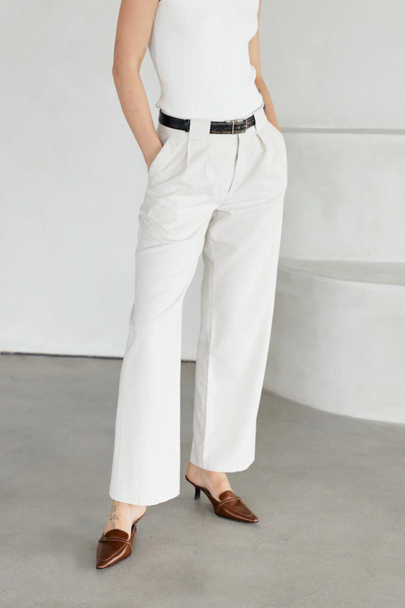 Style these classic pants with a basic t-shirt or blouse.